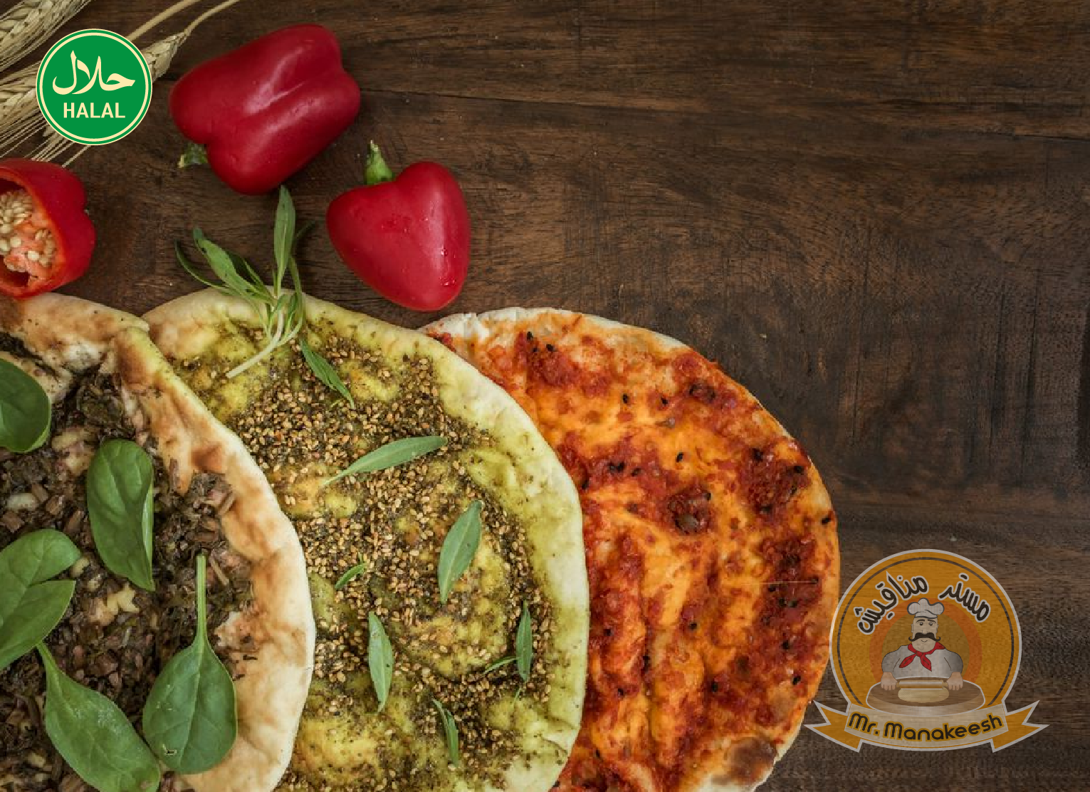 Authentic Arabic manakeesh with delicious ingredients. Choose from the menu below: